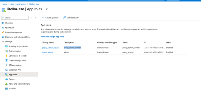 Note: The role from Entra ID will take precedence over any existing role in the LiteLLM database. This ensures your SSO provider is the authoritative source for user roles.